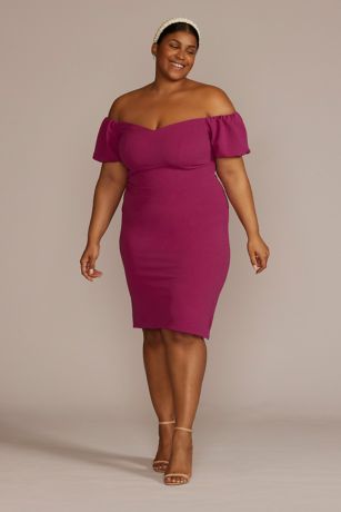 Plus Size Off The Shoulder Puff Sleeve Midi Dress David S Bridal